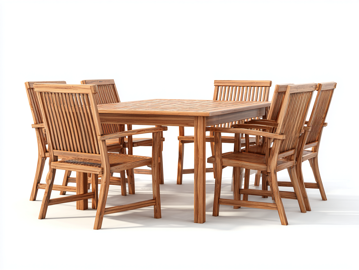 La mesa proporciona espacio suficiente para comidas familiares y reuniones sociales al aire libre. Las sillas con respaldo alto y reposabrazos favorecen una postura cómoda durante largos periodos de uso. El diseño equilibrado garantiza estabilidad y una estética natural adecuada para jardines y terrazas.